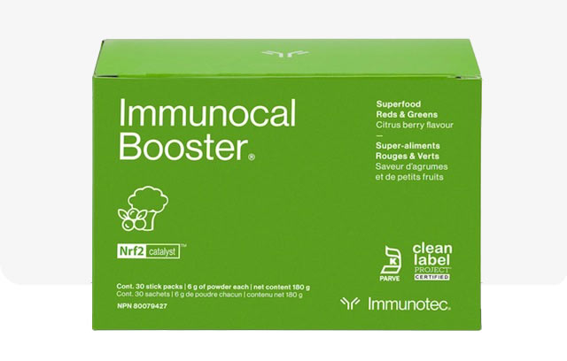 Notre Superaliment Rouges et Verts contient plus de 50 fruits et légumes. Ces trésors de phytonutriments sont les alliés de votre corps dans la lutte contre le stress oxydatif et les dommages cellulaires. Ils contribuent non seulement à renforcer votre système immunitaire, mais aussi à améliorer votre santé cardiaque, à combattre l’inflammation et à favoriser les effets anti-âge*.Cela inclut ceux qui fournissent du sulforaphane et du sélénium, l’un des commutateurs Nrf2 les plus puissants sur le marché. Le Booster aide à optimiser les effets de la production de glutathion d’Immunocal.