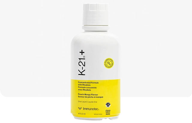 K-21+ a été formulé avec un mélange exclusif de minéraux et d’herbes comprenant de la rhodiole pour aider à améliorer votre capacité à vous concentrer et à gérer le stress.Équilibrez votre corps et votre esprit grâce au bien-être à base de plantes de K-21+®. Maintenant offert dans une nouvelle formule sans sucre !